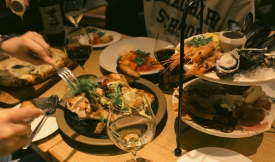 神戸の食材を使用したパスタやピザ。